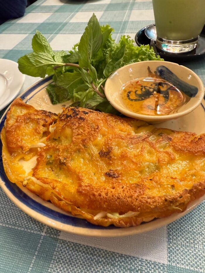 I ordered the pancake and the spring rolls. Both were absolutely delicious. Told Michael that I had eaten in Vietnamese restaurants in California but they were nothing like this, an entirely different cuisine. (Those Americans never get anything right. Hahaha). The complexity of the flavors, the freshness of the vegetables and mint. Din ordered the skewered prawns sharing three: perfectly prepared, tasty sauce.  I will definitely return to sample more from the menu. I have already invited Shamir, Eva and Yasmin and her husband to join me.