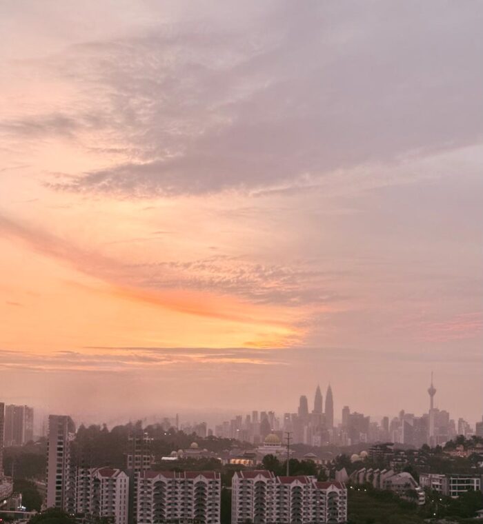 The very least I can do is include a few photos. I will. Yesterday’s good morning sunrise photo, in which I demolished a building or two. Another is also stunning, if I do say so myself. I converted a photo taken at dusk of the KL skyview into black and white. I sent it to Nixon