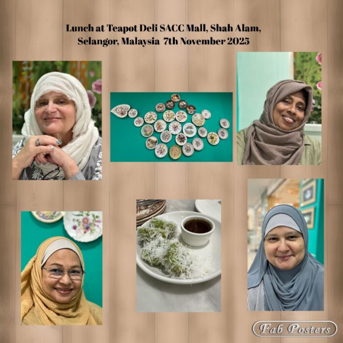 I had chicken pot pie which was absolutely delicious. Conversation over lunch proved that it is indeed a ‘small world.’ Elina, my Masjid tour guide, was a four-year-old child model for the line of children’s clothes made by Alina’s aunt. You will hear more of the amazing woman in subsequent blogs. What is the likelihood of that?  The  Aunt originally owned the Teapot Cafe, selling it to her niece. It is a lovely space enhanced by the many teapots and hand painted flower plates.