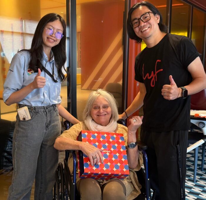 So photos will include one of me, Nixon and Colette . Colette a valued LYF employee who has decided I am both her mother and her grand daughter. Hmmm So strange – what a gift. My best friend for many many years was Colette. I have moved on. Hahaha Do get messages that she is on Facebook but that was then and this is now. If she could not manage to come and visit me in London I do not imagine she would come to Malaysia. I got a replacement. Hahaha Hi Colette M. wherever you are. Hahahaha I am in a wheel chair because me knee was hurting me.