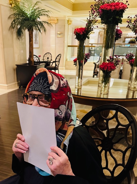 I shall now go backward and find some photos. And on my Instagram there is reel of Hammad and I eating at Kyoto, the Japanese Restaurant. I will pin it to the beginning for a few days. It is rather amazing. His father is a Nigerian learned scholar. He said at the time. “She has a clean slate.” “She lives in Medina, she is blessed by Allah” But this is the funny one. “But she does not know how to tie a Hijab.” He got all three right. Hahahaha. Although the hotel isa five star royal hotel I had a tiny room with no view which resembles a prison cell. You will see my view, as well as the view from Mr. Marwin’s office.