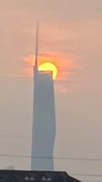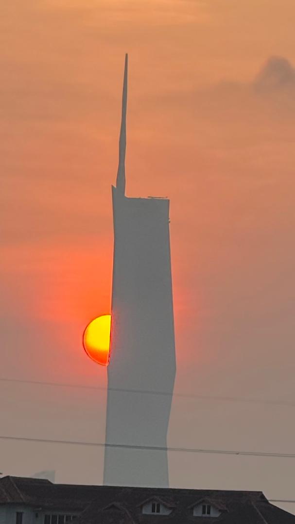 Classical music followed which accompanied my careful forward, backward, sideways walking. Emerged from the pool, looked skyward to see an emerging sun. Grabbed the camera. Took a photo. Edited it and sent it to all with this caption. Some hope. After peaceful water walking the sleepy sun made an appearance.