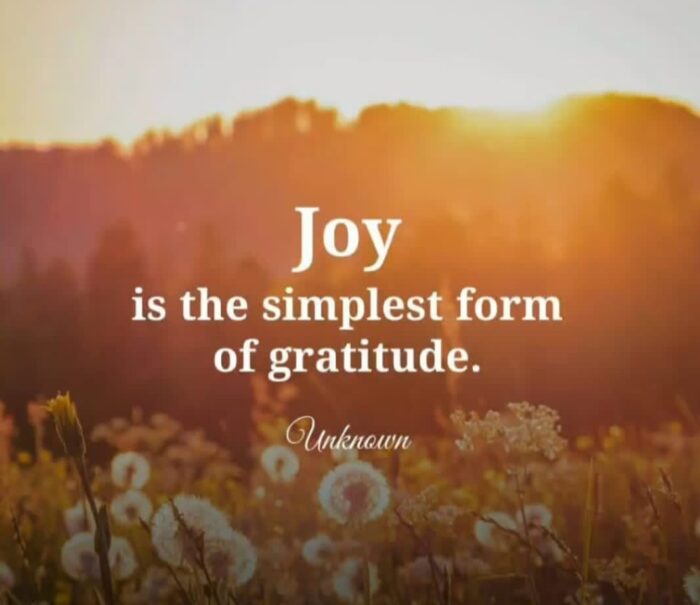 Please look at the message. Joy is the simplest form of gratitude, it says in English. But then a message in three languages – the only one I can decipher is – start the week with happiness.