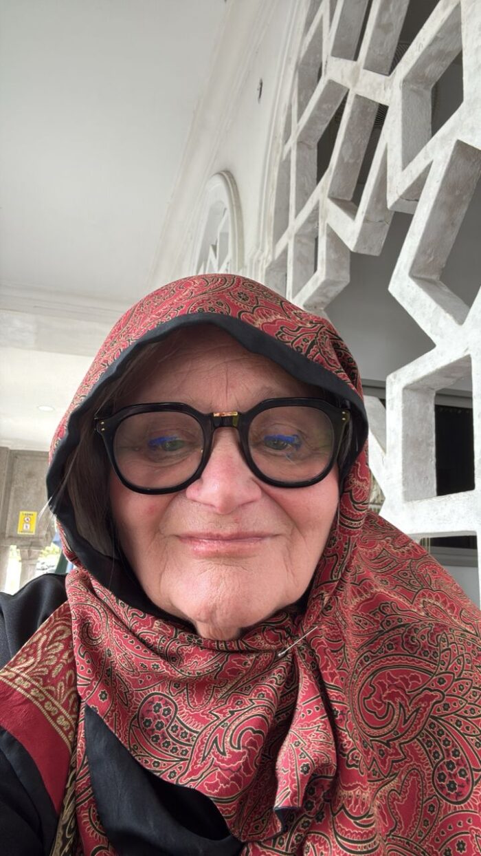 Now you shall have the opportunity to eavesdrop on a conversation that took place yesterday between Elina and me. She has a lung infection so she was not able to be at the Masjid yesterday as she is recuperating. She, a volunteer tour guide is a force. She was my guide that fateful day last April.