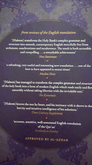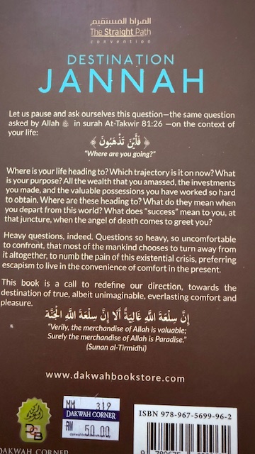 Photos of the Quran and back cover of “my Quran” gifted by Singapore’s Raffles Hotel and the cover and back cover of Destination Jannah.