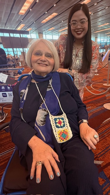 So much has happened since them. I cannot believe that was only a couple of days ago. I am now in Kuching. It was an adventure getting here in many ways, fully of surprises. Ann took me to the airport, thank goodness it was so confusing and she stayed with me throughout, pushing me about in my wheelchair. I checked in – traveling on Scoot which is the budget airline of Singapore Airlines. You will never guess what  happened. The women who checked me in – had the greatest name. It was Alexis. Now how likely is that??? Of course photographs were taken and you shall see them at the conclusion of this blog.