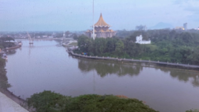It is a super short flight. We arrived here at Kuching.  A woman called Hazel pushed me out to be picked up – who was there?? My agent herself – wonderful Theresa. Drove me to the Hilton – checked in. I have adjoining rooms only though there is only one of me. A great view – you shall learn about it later.